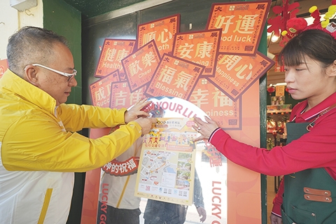 岑浩輝訪塔石廣場年宵市場及氹仔爆竹燃放區 勉年輕人為澳貢獻力量