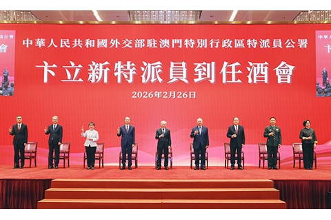 【專訪】外交部駐澳門特派員公署特派員卞立新到任酒會昨日假中葡綜合體舉行。 特區行政長官岑浩輝、全國政協副主席何厚鏵、中聯辦主任鄭新聰、前行政長官賀一誠、駐澳門部隊副司令員戴勁松、澳門立法會主席張永春、澳門終審法院院長宋敏莉、特區政府主要官員、行政會委員、立法議員、外國駐澳領事機構負責人、澳門各界知…