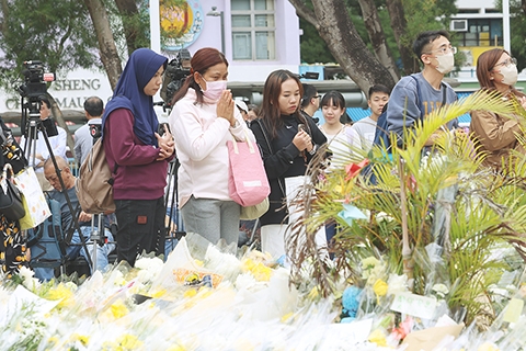 香港市民哀悼大埔火災逝者 盼生者走出…