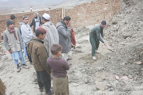 ◎ 阿富汗自然災害管理部發言人優素福.哈馬德四月三日說,阿北部地區當晚發生的五點八級地震已造成至少八人死亡,另有一名兒童受傷。圖為四日,在阿富汗喀布爾省,一名男子清理一棟因地震倒塌的房屋。(新華社發 塞夫拉赫曼.薩菲 攝)
