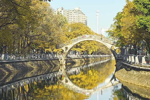 ◎ 十二月十五日,大觀河畔金黃的滇朴。近日,雲南省昆明市大觀河畔的滇朴滿樹金黃,市民在鎏金樹影與和煦陽光中享受冬日「春城」別樣風景。(中新社記者 李嘉嫻 攝)