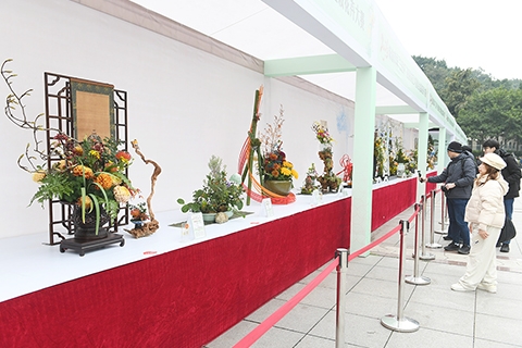 ◎ 一月四日,重慶動物園展出的九十二件成渝花藝工匠精品吸引市民欣賞。元旦假期,一場融合藝術美學與文化內涵的迎春花藝盛宴──二0二六成渝雙城「工匠杯」迎春插花藝術暨組合盆栽花卉大賽在此舉行。據悉,該展覽展出插花藝術和組合盆栽作品共九十二件,其中插花藝術作品五十四件,組合盆栽作品卅八件。(中新社記者 …