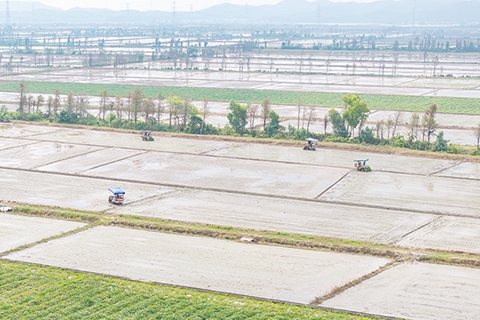 ◎ 三月廿四日,在廣東江門台山市都斛鎮,工作人員操作插秧機在田間插秧(無人機照片)。近日,位於廣東江門台山市都斛鎮的「廣東第一田」核心產區啟動最後一批絲苗米秧苗插秧工作。台山擁有連片優質水田面積一萬五千公頃,核心產區涵蓋都斛、赤溪、鬥山等鎮,連片水田比例位居全省前列,有著「廣東第一田」的美譽。近年…