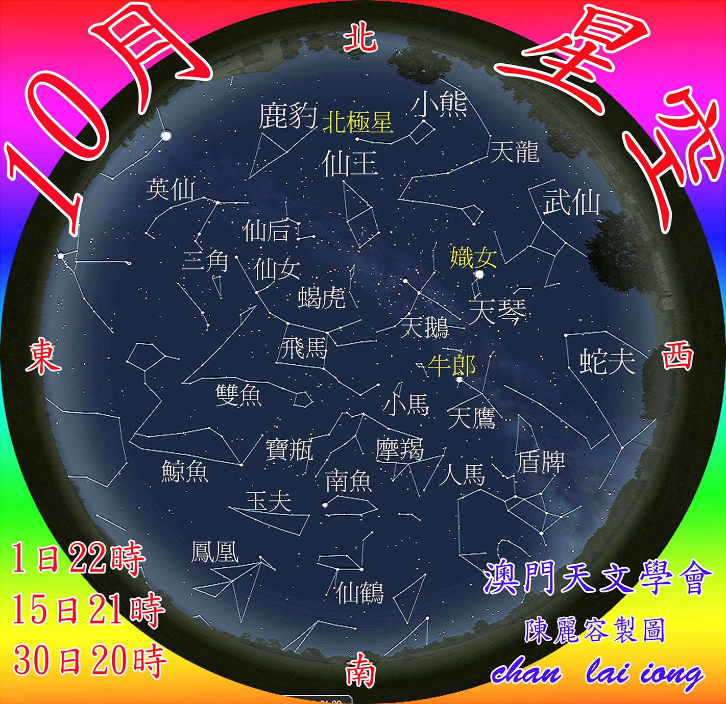 望時間為10月7日11點。下弦月時間為10月14日2點。朔時間為10月21日20點。上弦月時間為10月30日0點。