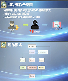 司警調查發現,該網站今年一月開始運作,由主腦鄭某及許某管理,其餘在本澳被捕的五名本澳男女,負責招攬有意來澳賣淫的女子加入「通訊群姐」,賣淫女再透過淫媒向鄭某及許某支付「招嫖廣告費」,其他成員協助在該網站帖文招嫖,賣淫女每七天需支付三百元人民幣的「廣告費」。此外,賣淫女有需要時另外付費向集團購買賣淫用品,再由被捕的越南男外僱騎單車送貨到酒店,而每次賣淫肉金收三百至六百不等澳門元。司警稱,集團運作至今在該網站,最少刊登二千五百則招嫖廣告,獲利最少七十五萬元人民幣。