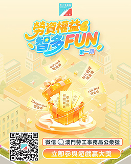 此外,勞工局亦已推出線上學習課程(https://www.dsal.gov.mo/elearning/public/index.html#/),內容包括簡明生動的短片、問答題、配圖遊戲及模擬案例等,方便市民隨時隨地學習,進一步認識自身權益。◇