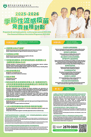 衛生局強調,接種流感疫苗是預防流感最有效措施,接種後一般要至少二至三星期後才能產生足夠抗體。而孕婦、幼兒、長者及慢性病人士等,感染流感病毒後較易產生嚴重併發症,應在十一月下旬前儘早接種當季流感疫苗。此外,日本衛生部門日前宣佈已進入流感流行季節,對於有緊急需要前往當地的本澳居民,出示入學證明或機票等證明後,可到衛生中心或衛生站優先接種。