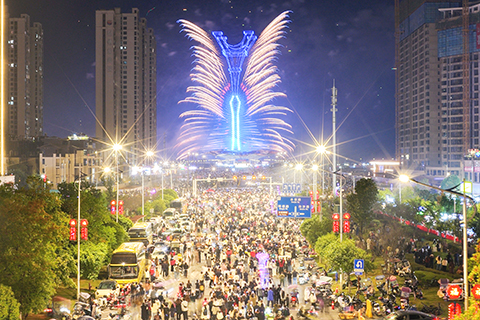 最引人注目的當屬全球首創的塔柱煙花大秀——「煙花光塔」。它是目前世界上最高的煙花發射裝置之一,將煙花藝術推向新高度。