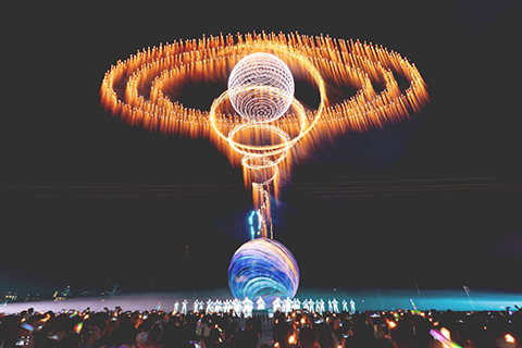瀏陽煙花從業者近年來深入研究「煙花+無人機」「煙花+多媒體藝術」等現代化表現形式,打造出「天空之門」等諸多令人震撼的煙花表演。當晚,現場又上演了「地球之心」「傘雨煙橋」「天上宮闕」「萬馬奔騰」等煙花演繹的夜空奇觀。