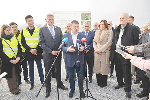 ◎ 由中國路橋公司承建的克羅地亞波熱加─戈迪尼亞克快速路項目開工儀式11月11日在波熱加舉行。克羅地亞海事、運輸和基礎設施部長布特科維奇、中國駐克羅地亞大使齊前進等出席儀式。圖為當日,在克羅地亞波熱加,克羅地亞海事、運輸和基礎設施部長布特科維奇(中)在由中國路橋公司承建的克羅地亞波熱加─戈迪尼亞克快速路項目開工儀式上致辭。((新華社記者 李學軍 攝)