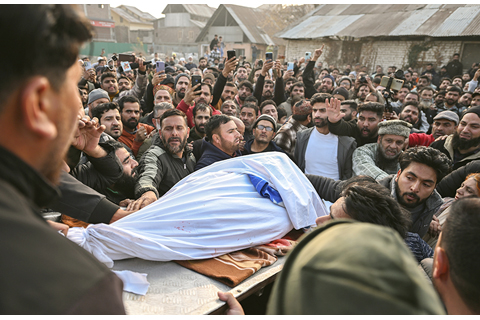印控克什米爾地區爆炸至少9人喪生 2025-11-16 03:31:00 ◎ 據印度媒體報道,印控克什米爾地區一警察局十一月十四日晚發生爆炸,造成至少九人死亡、二十九人受傷。圖為十五日,在印控克什米爾地區斯利那加,人們哀悼爆炸事件中的遇難者。(新華社發 賈韋德.達爾 攝)