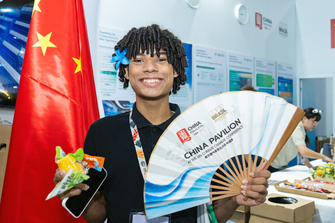 聯合國氣候變化貝倫大會上的中國特色 2025-11-16 03:30:00 ◎ 《聯合國氣候變化框架公約》第三十次締約方大會(COP30)十一月十日在巴西北部城市貝倫開幕。會場內外,中國的文化產品、綠色科技和創新技術展示受到了與會嘉賓的熱烈關注,成為大會上的一道亮麗風景。圖為十二日,在巴西貝倫,嘉賓在COP30會場內的「中國角」展示折扇。(新華社記者 王天聰 攝)
