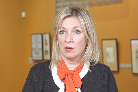 ◎ 十一月十八日,俄羅斯外交部發言人扎哈羅娃在莫斯科接受新華社記者專訪。表示高市早苗應汲取歷史教訓。(新華社記者 孟菁 攝)