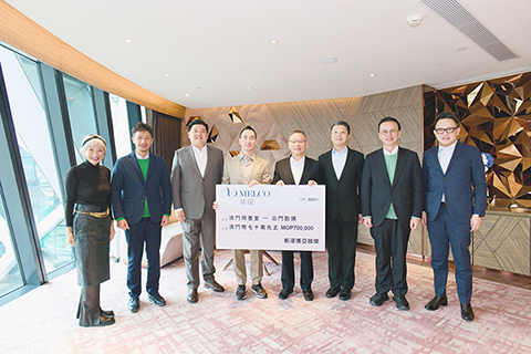 支票頒贈儀式日前假新濠天地摩珀斯舉行,由新濠主席兼行政總裁何猷龍致送善款支票,並由同善堂代表包括崔世平主席、莫志偉副主席、何敬麟副主席、蔡明威值理及何偉業值理接受。