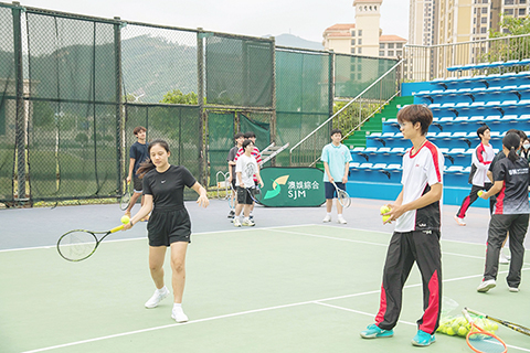 活動當日,「網球好友營」的主持人首先向師生介紹中國網球巡迴賽的賽事概況,並分享中國網球運動的最新發展動態。隨後,兩場精彩的分組遊戲輪番上演。在專業網球教練的指導下,學生們手持網球拍,與隊友默契配合,在歡笑中體驗網球運動的樂趣。活動現場還精心展示了歷屆中國網球巡迴賽冠軍的宣傳照,包括布雲朝克特、吳易昺、劉方舟、王雅繁、崔傑、特日格樂、王薔等,讓同學們近距離感受網球冠軍的風采,激發他們對網球運動的嚮往與追求。通過本次活動,讓濠江學子們了解到中國網球的發展,增強了民族自信心與榮耀感,也在他們心中種下熱愛運動的種子。