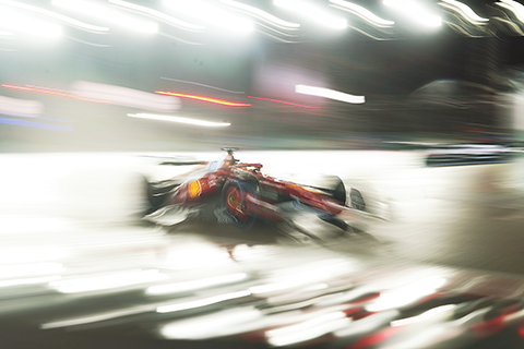 ◎ 十一月二十一日,法拉利車隊英國車手咸美頓在第三次練習賽中。二0二五賽季,拉斯維加斯世界一級方程式錦標賽排位賽在美國內華達州拉斯維加斯舉行。(新華社記者 吳曉凌 攝)