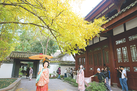 人鷗同樂享暖陽 -- 內地建成全球規模最大生態環境監測網絡 王滬寧在廣東調研時強調 為推進中國式現代化凝心聚力 國產DDR5亮相 達國際領先水平 台解禁福島食品 輿論質疑難脫政治盤算 中國商業航天激活民生應用 中國股份制銀行AIC擴容至3家 民企出海「各顯身手」 全球市場煥新中國印象 浙商涉外法律服務中心運行 覆蓋94個國家及地區 -- 2025-11-24 03:30:00 ◎ 十一月二十三日,四川成都,遊客身著古裝在成都杜甫草堂博物館內的銀杏樹下拍照留念。立冬過後,成都漸漸進入了銀杏的觀賞季,金黃的銀杏為城市增添了浪漫與詩意。(中新社記者 安源 攝)