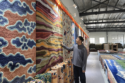 此外,貢保扎西還積極拓展銷售渠道,在線上開展直播活動,並在天津、上海、三亞等城市設立展示區,向海內外遊客展示獨具魅力的民族藏毯。