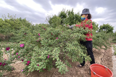 從田間種植到精深加工,從單一農產品到農文旅融合,蘭州苦水玫瑰逐漸「花開全國、香飄世界」。◇(中新社)