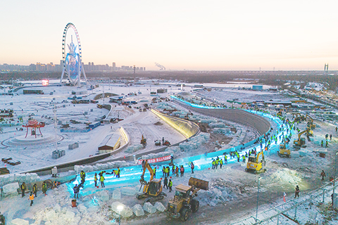 哈爾濱冰雪大世界超級冰滑梯火熱建設中