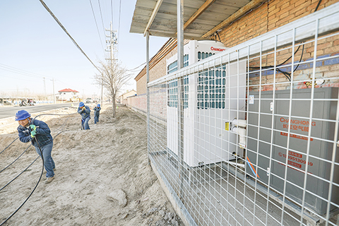 ◎ 十一月廿七日,當地供電部門工作人員在寧夏吳忠市同心縣河西鎮旱天嶺村進行「煤改電」配套供電工程施工。近年來,位於寧夏中部乾旱帶的吳忠市同心縣積極推進鄉村清潔供暖項目,通過農村清潔取暖改造工程和「煤改電」配套供電工程,讓二萬八千戶農戶實現清潔取暖。據了解,「十四五」以來,同心縣清潔取暖覆蓋率較「十三五」末提升卅七個百分點,PM2.5、二氧化硫濃度持續下降,實現溫暖過冬與藍天保衛的雙重效益。(新華社記者 楊植森 攝)
