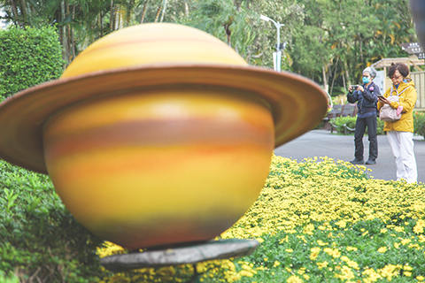台灣台北一年一度的士林園藝所菊展十一月廿八日登場,今年以「藝菊圓夢」為主題,透過園藝栽培、花藝設計與多種佈展手法呈現出圓夢、夢想等花藝設計,特別是揭開大立菊培育的面紗,讓民眾了解其生長培育情形,更可以將不同品種菊花一覽無遺,也讓大家一起來探索心中的夢,打造富特色浪漫的花藝世界。(香港中通社圖片)