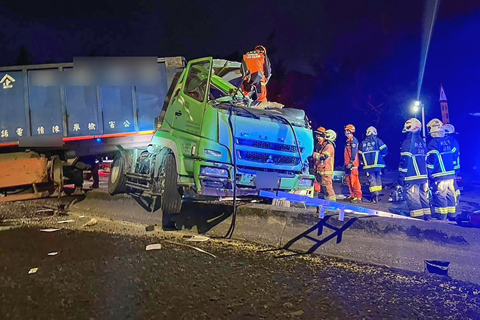 惠山古鎮銀杏紅楓 台新北大貨車打滑失控四車相撞 中國中東部將現大範圍雨雪天氣 局地降溫達攝氏十六度 雲岡石窟「流鼻涕大佛」 開啟封閉保護 二0二五四川省冬季旅遊季啟動 「蜀山暖雪」受東南亞遊客青睞 虛構身份跨領域滲透暴露公共治理系統性漏洞 「最忙五人組」鬧劇揭制度之殤 台新北大貨車打滑失控四車相撞 2025-12-09 03:30:00 ◎ 十二月八日凌晨,台灣一輛大貨車行經新北市貢寮區台二線九十九公里處往宜蘭方向,突然失控打滑衝過中央分隔島,與對向車道一輛駛至的貨櫃車對撞,導致後方車輛收掣不及追撞。事故共造成四車相撞,一死一傷。(香港中通社圖片)