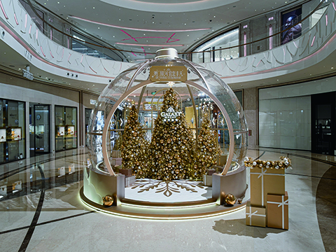 翡翠大堂的中心裝置將閃耀聖誕樹與晶水晶球融合,化身迷人節慶標誌。裝置定時綻放光影盛宴,伴隨歡欣聖誕樂曲。