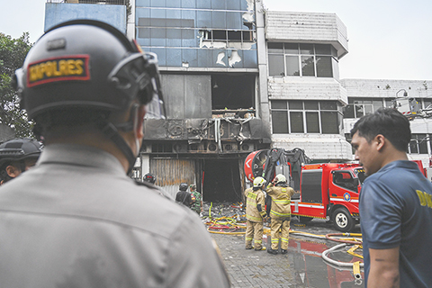 印尼雅加達一建築發生火災致22人遇難 2025-12-10 03:30:00 ◎ 位於印度尼西亞雅加達中部的一棟建築十二月九日發生嚴重火災,已造成二十二人死亡。圖為當日,消防員在印度尼西亞雅加達一起火災現場工作。(新華社發 祖卡南 攝)