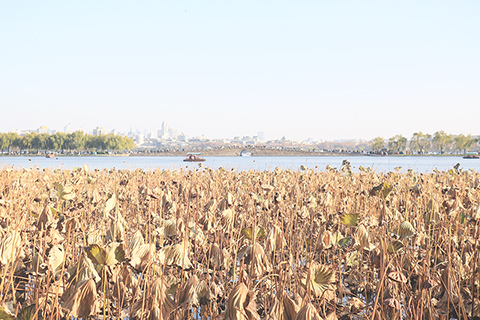 ◎ 十二月十四日,杭州西湖荷葉枯黃。受冷空氣影響,杭州迎來降溫天氣。(中新社發 吳怡欣 攝)
