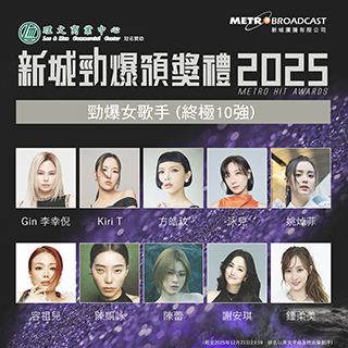 「新城知訊台」主辦、「理文商業中心」冠名贊助,一年一度的樂壇盛事《新城勁爆頒獎禮2025》即將於12月27日下午三時假灣仔香港會議展覽中心舉行。由新城廣播有限公司主辦、「理文商業中心」冠名贊助。今年八大獎項的公開投票已全面截止,其中備受關注的「勁爆男、女歌手」獎項,經網民及音統會投票,終極十強名單今日正式揭曉。(截至2025年12月21日23:59,排名以英文字母及姓氏筆劃序)