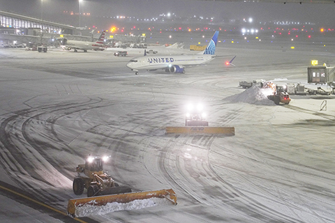 美國東北部大雪 數千航班取消或延誤 2025-12-28 03:30:00 ◎ 美國東北部十二月二十六日大雪天氣影響,當天近一千五百架次航班被取銷,近六千架次航班延誤。圖為當日,鏟雪車在美國紐約拉瓜迪亞機場清理積雪。(新華社記者 張鳳國 攝)