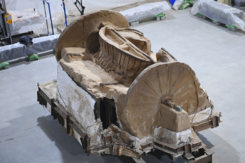 在位於陜西榆林清澗縣的寨溝遺址考古隊文物修復室中,陜西省考古研究院館員于有光和同事們忙著整理文物。「寨溝遺址最有特色的出土文物是我們發現的四十餘輛墓內葬車,此外還有漆器、骨器等殷墟風格明顯的隨葬品。」于有光說,「這些文物均出自『甲』字形大墓中。在寨溝遺址,我們發現了十多座此類高等級貴族大墓。」