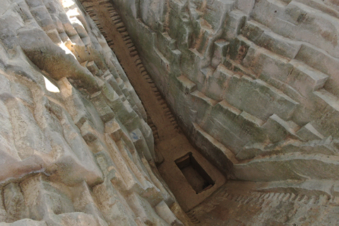 在寨塬蓋周邊的山峁上,也不斷湧現新發現:十多座「甲」字形大墓相繼發現,其中一座墓葬總長六十四米,深十九米,其工程土方量達到六千多立方米,規模堪比殷墟王陵。這些大墓雖遭到不同歷史時期的嚴重盜擾,但仍出土銅、金、玉、陶、石、骨貝等大量隨葬品。