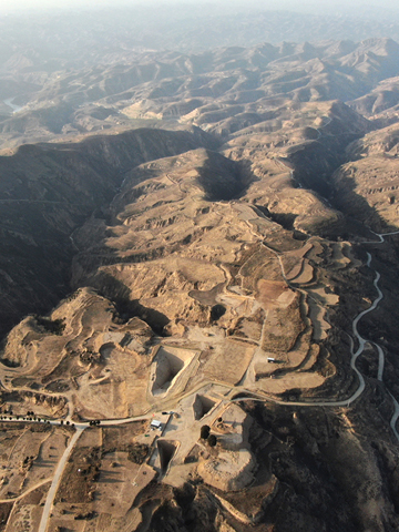 ◎ 十二月九日拍攝的陜西清澗寨溝遺址寨塬蓋夯土建築群(無人機照片)。(新華社記者李一博 攝)