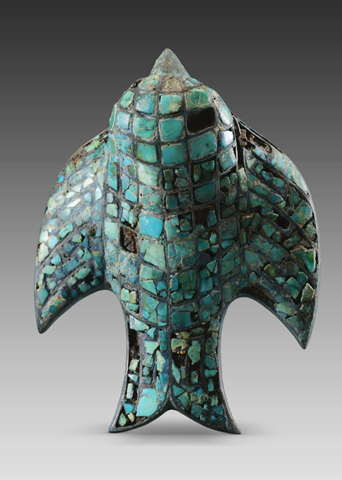 ◎ 陜西清澗後劉家塔墓地出土的鑲綠松石銅飾(資料照片)。(新華社發)