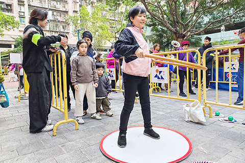 【特訊】由體育局主辦的「大眾康體日」活動,於12月27日在宏開宏建休憩區舉行,活動吸引了眾多市民到場參與,當中有不少家長帶同子女前來參與,藉著參與康體活動增進親子關係,同時寓運動於娛樂。場內氣氛溫馨熱鬧,樂也融融。