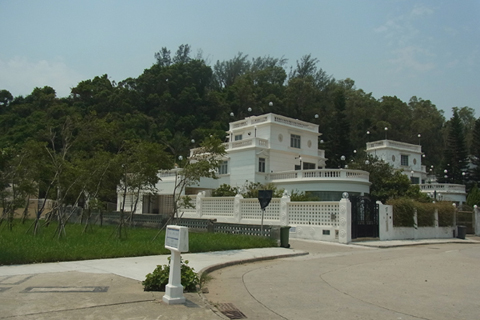 有見及此,精明的地產商早在上世紀八九十年代,在這裡興建了十三幢最豪華,最優雅,最昂貴的南歐別墅,全是純奶白,兩層高,有露台,具庭院,統一模式的豪宅,供億萬富翁渡假休憩。這系列建築群畫龍點睛,使龍輝半島成為普羅大眾遙不可及,夢寐以求的蓬萊仙境。