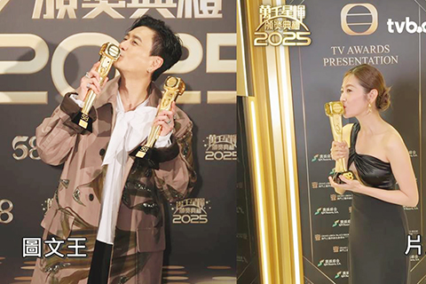 TVB劇集及綜藝節目2025年大豐收,於上周日(4日)晚舉行的《萬千星輝頒獎典禮》亦贏盡熱話,而緊貼這個城中熱話進行全方位深入報道的TVB官方社交平台(不計內地平台),昨日亦宣布《頒獎禮》相關報道在社交平台的整體表現與去年比較有大幅攀升,實在可喜可賀!經過一日半的累積計算,頒獎典禮內容總接觸量,由去年的3,900萬人次急升至6,900萬人次、影片播放量亦由去年的990萬激增至超越2,200萬、比去年大幅攀升177%及244%。而綜合超過200條相關圖文及影片,「三大片王」順序為第一名陳自瑤「親吻獎座」(近170萬接觸量)、第二名林盛斌「得獎宣言+扑爛獎爆笑一刻」(超過160萬接觸量)及第三名王敏奕「奪女配答謝各界支持」(超過130萬接觸量);至於「三大圖文王」順序則為第一名黃宗澤「入行27年終升呢雙料視帝」(超過220萬接觸量)、第二名吳業坤「奪男飛躍開心玩趣怪樣」(近200萬接觸量)及第三名林盛斌「扑爛獎爆笑一刻」(超過130萬接觸量)想知道更多相關精彩資訊,敬請留意www.tvb.com◇