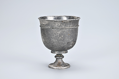 ◎ 一月六日,陝西西安,陝西省考古研究院集中發佈一批考古成果。二0二二年一月至二0二四年四月,陝西省考古研究院對西安市長安區神禾二路賈裡村範圍內的古墓葬進行了發掘,其中編號為M228墓葬的墓主馬三娘,為左率府翊衛隴西董順先夫人,葬於大周聖曆元年(六九八年)。墓葬出土有陶瓷器、銅器、鐵器、金銀器、石器等十九件(組),其中,金釵、金梳背、銀三足罐、銀高足杯等金銀器非常精美,為研究盛唐時期的中外文化交流及貿易往來提供了新的實物資料。圖為二0二五年九月十二日拍 攝)的高足杯。(中新社發陝西省考古研究院供圖)