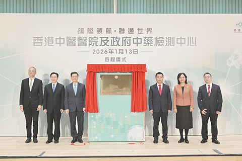 李家超還提到,特區政府二0二五年十二月公佈了香港首份《中醫藥發展藍圖》,勾畫了中醫藥發展的長遠願景。香港中醫醫院與政府中藥檢測中心作為中醫藥發展的兩大旗艦機構,將配合藍圖規劃,帶動中醫藥服務、人才培訓、產業科研等不同領域發展。