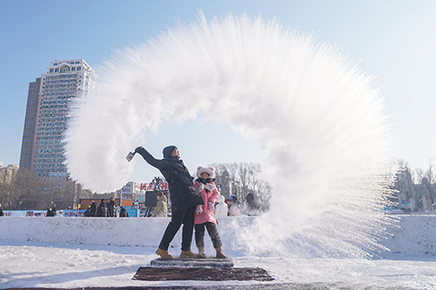 黑龍江哈爾濱:潑水成冰吸引遊客體驗 2026-01-16 03:30:00 ◎ 一月十五日,遊客體驗潑水成冰。在黑龍江哈爾濱松花江冰雪嘉年華上,遊客紛紛體驗潑水成冰,在寒冷的空氣中,潑灑的熱水瞬間化為冰花與冰霧。(中新社記者 趙宇航 攝)