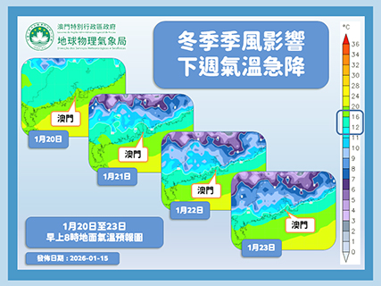 【專訪】氣象局表示,持續受東北季風影響,本澳未來數日陽光充沛,日間較為和暖,但早晚天氣仍然清涼,日夜溫差較大。而下周中期開始將有一股冬季季風抵達華南沿岸,氣溫會顯著下降,隨後數日最低氣溫將再度降至攝氏十二度或以下。