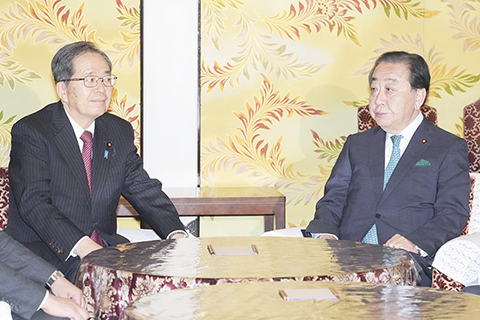 日媒稱日本立憲民主黨與公明黨就聯合組建新黨達成一致 2026-01-16 03:30:00 ◎ 據日本媒體一月十五日報道,日本立憲民主黨與公明黨已就聯合組建新黨達成一致。兩黨將在接下來的眾議院選舉中聯合對抗高市陣營。圖為當日,在日本東京國會,日本立憲民主黨黨首野田佳彥(右)與公明黨黨首齊藤鐵夫準備會談。(新華社/共同社)