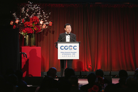 ◎ 中國駐美國大使謝鋒一月十五日在美國中國總商會二0二六年農曆馬年頒獎晚宴上致辭表示,中方對發展中美關係有誠意但講原則,在捍衛主權安全發展利益的大是大非問題上,沒有絲毫妥協餘地。當天的頒獎晚宴活動表彰了對中美經濟增長、文化交流和社區參與作出重要貢獻的多家企業,約三百名來自中美工商界等領域人士出席。圖為當日,在美國紐約,中國駐美國大使謝鋒在美國中國總商會二0二六年農曆馬年頒獎晚宴上致辭。(新華社記者 張鳳國 攝)