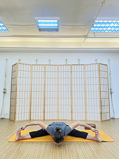 這一體式在加強整個背部伸展度的同時,也能夠伸展腿部筋腱,促進骨盆區域的血液循環變得更加良好。對女性練習者來說更可以給予子宮溫和的刺激,從而控制生理期和令它變得更有規律。