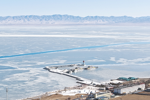◎ 這是一月廿三日拍攝的青海湖一角(無人機照片)。冬日時節,隨著氣溫持續下降,被譽為「高原藍寶石」的青海湖冰封玉砌,別具特色。( 新華社記者 齊芷玥 攝)