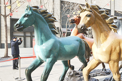 雙方同意中英要發展長期穩定的全面戰略夥伴關係 習近平會見英國首相斯塔默 北京街頭駿馬雕塑引遊人 明家犯罪集團案11名罪犯被執行死刑 北京街頭駿馬雕塑引遊人 2026-01-30 03:30:00 ◎ 一月二十九日,在北京王府井大街上,中國工藝美術大師朱炳仁的作品《王府八駿》吸引遊人駐足觀賞。馬年將至,北京一些與馬相關的藝術裝置紛紛亮相,盡顯年味。(中新社記者 易海菲 攝)