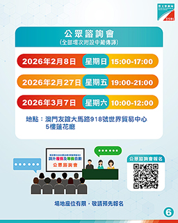 於諮詢期內,勞工局將舉辦3場諮詢會,向社會各界介紹公開諮詢的內容,有意出席的市民可預先透過勞工局的專題網頁進行報名;除公眾諮詢會外,市民亦可透過「一戶通」手機應用程式或網頁版、勞工局專題網頁、電郵、電話、傳真及郵寄等方式提供意見及建議。