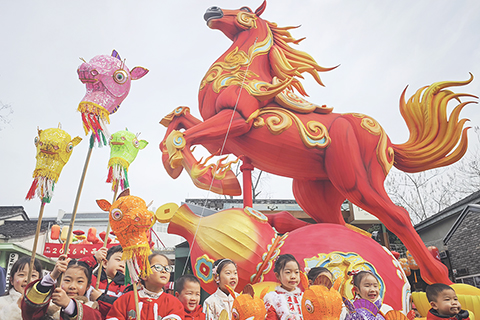 南京城南鄰里家宴熱鬧開席 2026-02-02 03:30:00 ◎ 二月一日,江蘇南京,城南小西湖鄰里家宴熱鬧開席,社區新老鄰居們齊聚一堂,暢談生活、欣賞表演、品味佳肴,在歡聲笑語中迎接馬年新春的到來。圖為孩子們手舉小馬燈拍攝合影。(中新社)